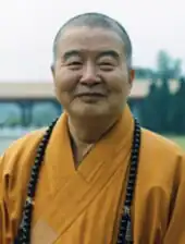 Born Chang Baokang near Shanghai in mainland China, he became a monk at the age of 13. During the Chinese Civil War, he left the monkhood and went to Taiwan in 1949 by enlisting in a unit of the Nationalist Army.[6] After leaving the army Sheng Yen returned to monkhood and became recognized as a Dharma Heir in both the Linji and Caodong traditions. Sheng Yen was a 57th generational dharma heir of Linji Yixuan in the Linji school (Japanese: Rinzai) and a third-generation dharma heir of Hsu Yun. In the Caodong (Japanese: Sōtō) lineage, Sheng Yen was a 52nd-generation Dharma heir of Dongshan Liangjie (807-869), and a direct Dharma heir of Dongchu (1908–1977).[7]