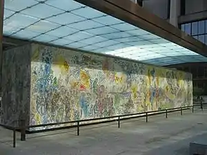 Four Seasons is a 1974 mosaic by Marc Chagall that is located in Chase Tower Plaza in the Loop district of Chicago, Illinois. The mosaic was a gift to the City of Chicago by Frederick H. Prince (via the Prince Charitable Trusts); it is wrapped around four sides of a 70 feet (21 m) long, 14 feet (4.3 m) high, 10 feet (3.0 m) wide rectangular box, and was dedicated on September 27, 1974.[1] It was renovated in 1994 and a protective glass canopy was installed.[2]