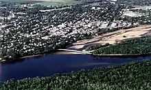 Aerial view of Portage, Wisconsin. The western end of the Portage Canal is visible at the upper right in the picture.