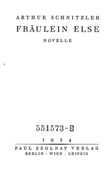 Fräulein Else is a 1924 novella by the Austrian writer Arthur Schnitzler.[1] It has been adapted into films on a number of occasions including the German silent Fräulein Else (1929), the Argentine The Naked Angel (1946) and Fräulein Else (2014).[2]