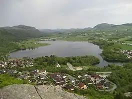 Frøylandsvatnet is a lake in the municipality of Sandnes in Rogaland county, Norway. The 0.48-square-kilometre (120-acre) lake lies on the south side of the village of Hommersåk, about 10 kilometres (6.2 mi) northeast of the city of Sandnes.[1] The lake empties into a small river that runs out of the north end of the lake. The river runs through Hommersåk into an arm of the Gandsfjorden.