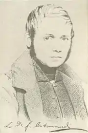 Antommarchi left Florence for Saint Helena to become Napoleon I's physician until his death. Antommarchi took up this position at the behest of Napoleon's mother Maria Letizia Ramolino and his uncle Cardinal Joseph Fesch.[2] Antommarchi received a letter of employment on 19 December 1818. Antommarchi was sent to St. Helena in replacement of Dr Barry Edward O'Meara as Napoleon's personal physician, because the illustrious captive would not agree to accept medical officers such as Dr Alexander Baxter or Dr James Roch Verling, who were proposed to him by his custodian Sir Hudson Lowe. However, Napoleon was not so impressed by Antommarchi's medical skills and even dismissed him from his service a couple of times, only to let him resume his duty soon after. In the last moments of illness, Antommarchi was assisted by Dr Archibald Arnott, who was accepted by Napoleon at the pressing demands from his two officers, Count Montholon and Grand-Marshal Bertrand.[3] After Napoleon's death, Antommarchi wrote The Last Moments of Napoleon where he concluded that Napoleon died of stomach cancer.