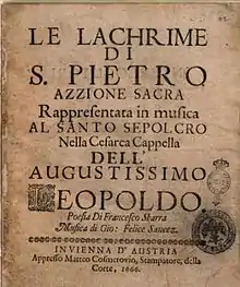 ![]() Sbarra's libretto for Le Lachrime di San Pietro (performed in Vienna, 1666) | |