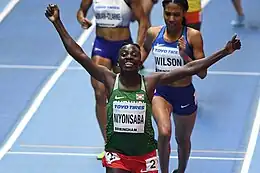 Francine Niyonsaba (born May 5, 1993) is a Burundian runner who specialized in the 800 metres and shifted to longer distances in 2019. She was the 2016 Rio Olympics silver medalist in the women's 800 metres. Her silver medal was the first Olympic medal for Burundi since 1996. Niyonsaba won a silver in the event at the 2017 World Championships.