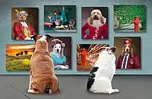A lifelong dog lover, Cleetus launched a collection of conceptual photography art just for dogs in 2019.[33] The entire collection[34] is conceived from a dog's perspective of the world,[35] and features larger-than-life dog portraits; fire hydrant centric scenery; dog food still life and renderings of chewed-up tennis balls.[36] The artwork[37] is specifically designed to be hung at a dog's-eye level near the food bowl and brighten up the pet's personal space.