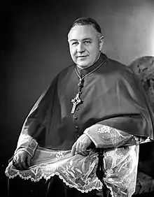 During Keough's fourteen years in Baltimore, the Catholic population of the archdiocese grew from 265,000 to 400,000.[6] Like other Catholic prelates of the early Cold War era, Keough was strong foe of communism. He supported the founding of the Maryland Action Guild, an anti-communist organization. At a commencement address at the University of Notre Dame in 1950, he warned about 2000 years of Christianity "...crumbling before the juggernaut of communism."[7]