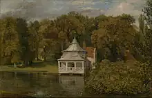 With the Napoleonic Wars over, in July 1816 Rebow had Constable return to Wivenhoe, and over the next two months the artist created two new works for him. These were Wivenhoe Park, Essex, and The Quarters, Alresford Hall, another property owned by Rebow. Both were complete by 17 September; the money from the commissions, as Rebow had intended, allowed Constable to marry his long-time sweetheart Maria Bicknell.[16][17] Both pictures again focused on Rebow's daughter, who is pictured driving a donkey cart in the former, a painting that Rebow had Constable extend so that the full extent of Wivenhoe Park could be included.[17][18] Constable wrote to Bicknell on 30 August describing the Rebows: