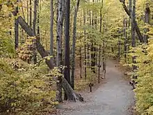 Franconia Notch State Park is a public recreation area and nature preserve that straddles eight miles (13 km) of Interstate 93 as it passes through Franconia Notch, a mountain pass between the Kinsman Range and Franconia Range in the White Mountains of northern New Hampshire, United States. The northern part of the park, including Cannon Mountain and Echo and Profile lakes, is in the town of Franconia, and the southern part, including Lonesome Lake and the Flume, is in Lincoln. Attractions in the state park include the Flume Gorge[4] and visitor center,[5] the Old Man of the Mountain historical site,[6] fishing in Echo Lake and Profile Lake, and miles of hiking, biking and ski trails.[7]