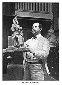 As a teenager, Elwell assisted French (eight years his senior) in the sculptor's Concord studio,[4] and later shared a studio with him in New York City.[7] Elwell studied at the school of the Boston Museum of Fine Arts.[6] With financial backing from French, the Alcotts, and other Boston patrons, Elwell traveled to Paris in 1881.[4] Following a recommendation from the U.S. Minister to France, Levi P. Morton, he was admitted to the École des Beaux-Arts in May 1882.[1] He matriculated after a year,[4] and studied privately in the studio of his École teacher, Alexandre Falguière.[6] Elwell then studied architecture at the Royal Art School in Ghent, Belgium, and was awarded a silver medal by King Leopold in 1884.[4]