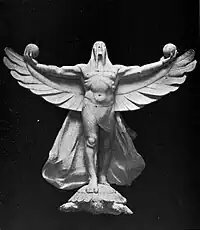Elwell created three heroic-sized sculptures for the 1901 Pan-American Exposition in Buffalo, New York. Kronos and Ceres faced each other across the pool of the West Esplanade Fountain; and Intelligence had the place of honor before the south portico of the New York State Building (now the Albright-Knox Art Gallery).[11] Elwell exhibited two bronzes in the Art Gallery, Egypt Awakening and Dancing Girl, and was awarded a bronze medal for them.[12]