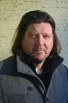 While studying in Bonn, and during his work after that, he has devoted himself to creative writing since the middle of the 1990s.[4] At the beginning of the 2000s he started standing out in publications, so that he has so far featured in numerous poetry anthologies, among them the series Junge Lyrik[5] by Martin Werhand Verlag. His poetry was also recognized in projects that got supra-regional attention, such as the event Poesie bewegt[6] in 2006/2007, organized by the Bremer Verkehrsbetriebe and the foundation Apollon-Stiftung with the art directors Renato Mismetti and Joachim Tuz, and the event Lesezeichen 2014, organized by the Förderverein Forum-Literaturbüro e. V. in Hildesheim.[7] In April 2015 his first own poetry book Sozialisolation was published in the series 100 Gedichte[8] by Martin Werhand Verlag.[9] His second poetry book was published one year later with the title Blutonium in the series 100 Gedichte by the same publisher.[10] A third, fourth and fifth book of poetry was published in the years 2017, 2018 and 2019 in the series 50 Gedichte[11] with the title Albtrauma, Kassiber and Alphasucht.[12] His works deal mainly with political and socio-critical topics.