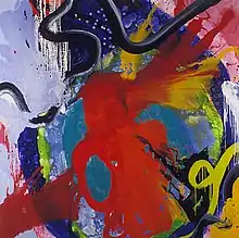 Frank Holliday (born 1957, North Carolina) is an American painter who became known in the New York City art world in the 1970s and 1980s. He is often associated with the East Village scene and associated with Club 57. His early career as an artist included working with Andy Warhol and close associations with artists such as Keith Haring[1] Ann Magnuson and Kenny Scharf.