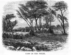 Camp in the Veldt: An engraving based upon a watercolour by Frank Oates.