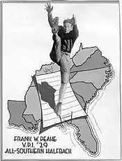 Frank W. Peake (May 15, 1903 – January 15, 1978)[1] was a college football running back for the Virginia Tech Hokies of Virginia Polytechnic Institute.[2] Peake's College Football Hall of Fame coach Andy Gustafson, said he never saw his equal as a punt returner.[3] Peake was voted into the Virginia Sports Hall of Fame in 1978,[4] and the Virginia Tech Sports Hall of Fame in 1983, the second year Tech athletes were honored. [5] He was also an accomplished track star.