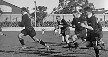 He, like brother Dave, had three trials for the 1935-36 team to Britain, but, unlike Dave, Frank missed out. There was a feeling this may have been a mistake, especially early in the tour when the All Blacks were still struggling to come to grips with the three-fronted scrum and an experienced head may have proved invaluable. Frank Solomon played his last representative matches for Auckland in 1939, before turning out a few times for the Barbarians and ending his career with a few service matches in England.[1]