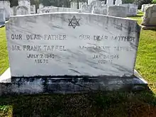 Taffel, son of Jacob Tafel, a dairy farmer, and Esther Verner, emigrated from Galicia (then Austria-Hungary, now part of Ukraine), entered the US from Montreal 1907, and became a US citizen, June 26, 1922. In 1924 he founded Atlanta's Fulton Auto Exchange, which rebuilt and sold used trucks, and he was also a commodities speculator. Taffel was a founder of Congregation Beth Jacob (Atlanta), and was one of eleven petitioners for the original charter.[1] The Frank Taffel Sanctuary is named in his honor. Taffel frequently spoke in public on Jewish causes, and was president of the Nahum Sokolov Literary Society.[2][3][4] He wrote for The Atlanta Journal-Constitution, The Macon Telegraph[5] and was Atlanta correspondent for the Jewish Morning Journal of New York.[6][7] In addition, he was president of the Atlanta Hebrew Sheltering and Immigrant Aid Society, and in 1937, over radio station WGST in Atlanta, described the work of the organization.[8]