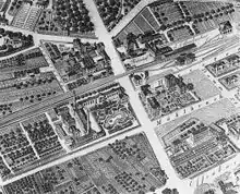 The terminus of the line was in Offenbach on a plot of land northwest of the centre of the city at that time. This area was west of Kaiserstraße between Domstraße and Bahnhofstraße (streets). The station—later called Lokalbahnhof—was built on the eastern edge of Sachsenhausen between Darmstädter Landstraße, Heisterstraße and Dreieichstraße and was originally called Sachsenhausen station, later Old Sachsenhausen station. Stations were also built north of Oberrad and at the current street of Wasserhofstraße.