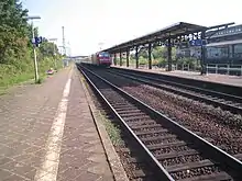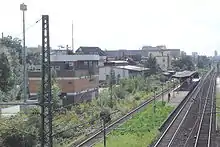 View of the station from the east from Omega bridge over the B 40, rail tracks and Kilianstädter Straße
