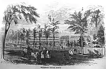 The St. James Hotel, now the Franklin Square House Apartments, served as the exterior backdrop of the popular 1980's NBC hospital drama series, St. Elsewhere.[5]