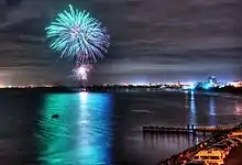 Situated on the eastern shoreline of Port Phillip, Frankston has been a popular seaside destination of Melbourne since the 1880s.[3] Frankston Beach is still one of the most frequented in Victoria,[8][9] and is recognised as one of the cleanest in Australia.[10][11] It was also home to one of the largest exhibitions of sand sculpting in the Southern Hemisphere.[12][13][14]