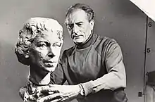 ![]() Photo of sculptor Franta Belsky with his bust of Queen Elizabeth II (Don Honeyman, 1981) | |