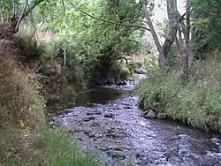 Fraser's Creek provides the bulk of the Kaikorai Stream's flow, and superficially appears to be the "main" river. Excess water (brought here by pipeline from Deep Stream in the Taieri River catchment) is discharged from a city water reservoir.[5] This spilling has taken place since the mid 1970s, providing a source of cool, clear water of high quality that would otherwise not be available in the Kaikorai catchment. In dry weather, about two thirds of the flow of the Kaikorai Stream comes from this outflow.[1] Fraser's Creek flows through Fraser's Gully, a popular recreation reserve clad in native bush.