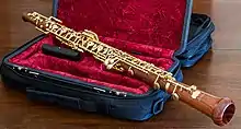 According to the website, the instruments listed below are made from long-aged wood, made from Grenadilla wood (melanoxylon) with silver-plated mechanics, the higher-quality models optionally also from Bubinga (Guibourtia tessmannii) and with gold-plated mechanics. The woodworking is done with the help of CNC machines, while the mechanics are manufactured in-house by hand.[4]