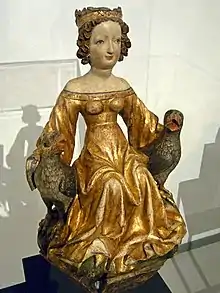 German chandelier sculpture, ca. 1430, possibly depicting Frau Minne as queen