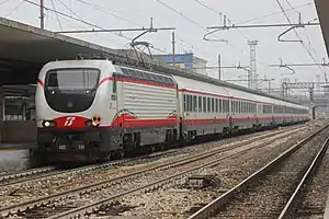 Frecciabianca ETR 460 train at Roma Termini. These are capable of 250 km/h (155 mph) but are limited to 200 km/h (124 mph) in service.