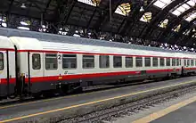 Second-class UIC-Z1 coach at Milano Centrale railway station.