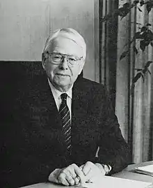 At the dawn of library automation in the early 1970s, he was a member of the Library and Information Technology Association (LITA), an organization within the American Library Association, where he was president from 1973 to 1975.[6] He joined the Ohio College Association in 1967 to develop OCLC (Online Computer Library Center) and led the creation of a library network that today links 72,000 institutions in 170 countries.[3][4][5][7] It first amassed the catalogs of 54 academic libraries in Ohio, launching in 1971 and expanding to non-Ohio libraries in 1977.[3][8][5]