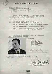 In August 1933, Stein married Liselotte (Lilo) Salzburg, the daughter of an eminent Jewish physician. Guards at the Justice of the Peace greeted them with "Heil Hitler" salutes. Working as a law consultant in a factory – the only job available to him at this point – Stein received a clandestine warning one night from the son of the factory owner. The SS was asking questions about him, and one of the other workers in the factory had been arrested that day and put into prison. A close friend had written, urging them to come to Paris, and they left the next day under the pretext of a honeymoon trip.