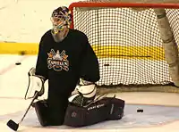 He was traded by the Avalanche to the Atlanta Thrashers in 2002 and would actually make the Thrashers lineup for parts of two seasons.[4] He primarily saw ice time with their AHL affiliate, the Chicago Wolves. He played for the Chicago Wolves for 3 seasons, 2001–02, 2002–03 and 2003–04. He then played for the AHL Cincinnati Mighty Ducks for the 2004–05 season and posted a season best save percentage of 0.924 and GA of 2.07 with 10 SO, while winning 25 games.