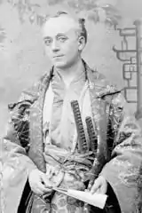 In the original production of The Mikado at London's Savoy Theatre (1885–1887), Bovill joined the D'Oyly Carte Opera Company, where he originated the supporting role of the Japanese nobleman Pish-Tush.[2] As part of the role, it was intended that Bovill should sing the bottom line in the madrigal "Brightly dawns our wedding day", which includes a bottom F. Bovill, however, was unable to produce this note with sufficient sonority, so shortly after the opera premiered, the character of Go-To, another "Noble Lord", was created to sing the bass line in this number (and to speak an introductory line of dialogue); Rudolph Lewis was cast in this role, while Bovill continued to play the rest of the role of Pish-Tush throughout the run.[3]