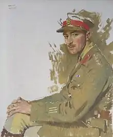 After the War he attended the Staff College, Camberley from 1920 to 1921,[1] and served in the War Office before becoming brigade major of 1st Rhine Brigade in 1921.[8] He was appointed an instructor at the Staff College in 1932, military attaché at the British Embassy in Berlin in 1935 and Deputy Director of Staff Duties at the War Office in 1937.[8] He served in Second World War on the General Staff of the British Expeditionary Force (BEF) before becoming General Officer Commanding (GOC) 2nd Armoured Division in 1939[10] and then, following an accident in April 1940, being invalided out of the army in 1941.[8][11]