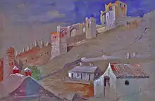 Soldiering could not have been Edridge's passion in life, for he still held the rank of lieutenant by the time he left Gibraltar in 1834. The garrison there had a good reputation in the eyes of its officers who were mainly of the hunting, shooting and fishing persuasion. Edridge found diversion in his painting, a pastime he seemed to have discovered for himself. His works - mainly watercolours - verged on the naive, but have great charm and document an interesting period in the history of Gibraltar.[4]