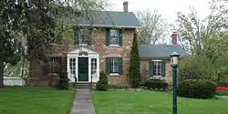 Today the house is surrounded not by fields and barns but by the paved streets and ample houses of the Macalester–Groveland neighborhood. Sited on a wooded lot, the house at 375 Mount Curve Boulevard—a two-story Greek Revival with two-foot-thick (0.6 m), random coursed walls—is somewhat obscured from the street by tall hedges. A one-story appendage originally served as a kitchen but was converted into a sitting room in 1932 by two of the Spangenberg sons, who lived in the house after their parents' deaths. The sons also transformed the first-floor bedroom into a kitchen, the parlor into a dining room, and one of the four upstairs bedrooms into a bathroom.[4]