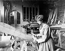 Tibbenham started his working life as a picture framer.[2] He progressed to cabinet making, and in 1904, established the firm of Frederick Tibbenham Ltd, furniture makers in Ipswich.[3] In its workshops in Turret Lane, the company made high-quality reproduction pieces, particularly in "Jacobethan" (Tudor or Elizabethan) style,[4] which were frequently exported to the US. They were also involved in furniture restoration, and used both genuine and reproduction panelling in house restoration work.[4]