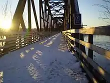 ![]() The Fredericton Railway Bridge, now called the Bill Thorpe Walking Bridge. | |