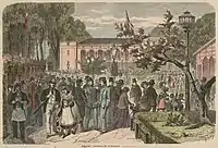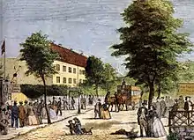 The area outside Frederiksberg Palace gardens had thrived as a fashionable destination for excursions ever since the construction of the palace in the first decade of the 18th century. When Frederiksberg Allé, as well as the palace gardens were opened to the public, and Copenhagen's fortifications were decommissioned, allowing for more robust constructions outside the city, numerous pleasure gardens and entertainment establishments sprung up along the street. One of the most popular places was Sommerlyst, a large pleasure garden which opened in 1834 at the end of Frederiksberg Allé. It had pavilions, flower beds, a merry-go-round, ferris wheels and a bandstand.[2]