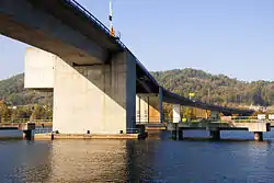 Frednes Bridge (Norwegian: Frednesbrua) is a double-leaf bascule bridge on Highway 356 in Porsgrunn Municipality in Vestfold og Telemark county, Norway. The 461.5-metre (1,514 ft) long bridge crosses the Porsgrunn River (Porsgrunnselva) just before it flows out into the Frierfjord at the site of Norsk Hydro's factory complex on Herøya.