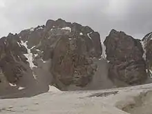 Free Korea Peak (Russian: Пик Свободная Корея, romanized: Pik Svobodnaya Koreya), is a mountain in the Kyrgyz Ala-Too Range of the Tian Shan. It is located in Ala Archa National Park in Kyrgyzstan.[2] It is one of the most famous peaks in the former Soviet Union, with a 900m wall on its northern face that is famously challenging to climb.[3]