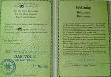 - Passport of the Free Republic of Wendland (Wendenpass) (Exhibit at the House of History in Bonn)