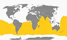 It is found in Antarctica, Argentina, Australia, Bouvet Island, Brazil, Chile, Falkland Islands, French Polynesia, French Southern Territories, Madagascar, Mozambique, New Zealand, Oman, Peru, Saint Helena, São Tomé and Príncipe, Solomon Islands, South Africa, South Georgia and the South Sandwich Islands, Uruguay, and Vanuatu.