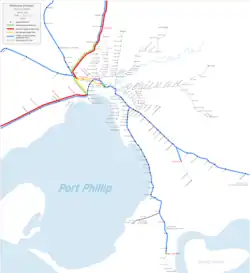 The rail network of Melbourne, Australia, has a significant number of railway lines and yards serving freight traffic. Rail transport in Victoria is heavily focused on Melbourne, and, as a consequence, much of the state's rail freight passes through the metropolitan network.
