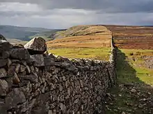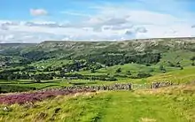 Fremington Edge is a 3-mile (5 km) long wall of crags and scree slopes that is situated to the north of the village of Reeth in Swaledale in the Yorkshire Dales National Park, England. Fremington Edge forms the south-eastern edge of Arkengarthdale, extending to the point where the dale meets Swaledale. Throughout its full length the Edge stays above the height of 1,300 feet (400 m) and reaches a highest point of 1,552 feet (473 m) at the northern end of the escarpment.[1]