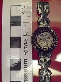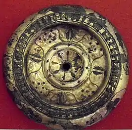 The hoard was discovered before 1833, when the first objects were donated to the Yorkshire Museum.[2] Other items were donated to the Museum by Captain Harland in 1852.[3] In 1880 A. W. Franks donated a portion of the hoard to the British Museum.[4]