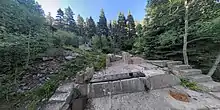 In 1894, mining started again, this time under the Claude Mining and Milling company.[4] The new owners installed a 15 stamp stamp mill along the South Ponil River with a 2,700 foot aerial tramway running down French Henry ridge.[1][4]