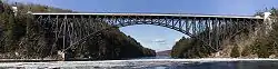 The French King Bridge is the three-span "cantilever arch" bridge[2] that crosses the Connecticut River on the border between the towns of Erving and Gill, Massachusetts, United States. The bridge, part of Massachusetts Route 2, carries automobile, bicycle, and pedestrian traffic and is owned and managed by the Massachusetts Department of Transportation (MassDOT).