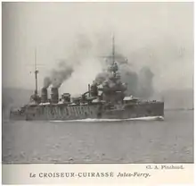 Jules Ferry was the second of three Léon Gambetta-class armored cruisers built for the French Navy (Marine Nationale) during the first decade of the 20th century. Armed with four 194-millimetre (7.6 in) guns, the ships were much larger and more powerfully armed than their predecessors. Completed in 1907, she was assigned to the Mediterranean Squadron (Escadre de la Méditerranée) where she served as a flagship.